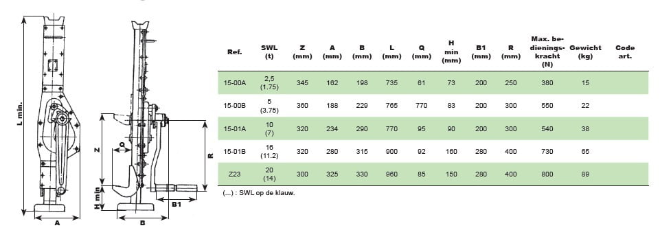 | Werklast | 2500 kg, 5000 kg, 10.000 kg, 16.000 kg, 20.000 kg |