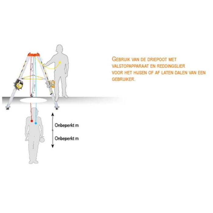 ELLERsafe aluminium driepoot afdaal- en reddingsset TM9-W, alle materialen worden geleverd met gratis certificaat. De set bevat: Driepoot TM 9W, hoogte: 147-229cm; Valstop en reddingslier CRW300 met 25m staalkabel, werklast: 140kg; Reddingslier RUP502, werklast: 140kg; Bevestigingsbeugel AT171; Omlooprol PL101; Opbergtas driepoot. Merk ELLERsafe Model TM9-W Materiaal aluminium Max. aantal personen 1, max. 140 kg Hoogte 147-229 cm Keuren : ook voor keuringen, reparaties en onderhoud kunt u bij ons terecht Certificaat programma : certificaten zijn zichtbaar in ons online certificaten programma Hebt u vragen over dit product? Neem contact met ons op.